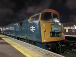 Running was slow but on schedule from Bristol Temple Meads to Bristol Parkway. Champion was then able to stretch its legs again and the run through to Didcot in the gathering gloom seemed fast, with nine minutes having been gained on the schedule by Steventon. Arrival into Oxford was 5 minutes early at 22:22. The train then continued to Birmingham New Street via the same route as outward, arriving on time at 23:59 to bring to an end a superb and nostalgic day. Travelling in the Vintage Trains stock was an absolute treat. The seats and the ride were comfortable, the ambience was relaxed and uncrowded, but above all we could hear D1015 working hard, whether speeding at 90 mph across the Somerset levels and Brunel's billiard table, or climbing Whiteball, Dainton, Rattery and Hemerdon with up to 400 tonnes in tow. Undoubtedly, a Champion Day Out!