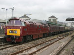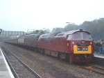 To Commemorate 30 years since the end of the Westerns in 1977 and to celebrate 5 years mainline running of D1015, a tour was run from Waterloo to Okehampton and return. The route of the tour also brought back memories of John Vaughan's RPPR 'Westerns South Western' Railtour from October 1976, hauled on the Southern Region by D1009 'Western Invader' and D1023 'Western Fusilier'. This was also the first time a Western had worked out of Waterloo since D1013 'Western Ranger' hauled the 'Southern Belle' Railtour 19th February 1977.